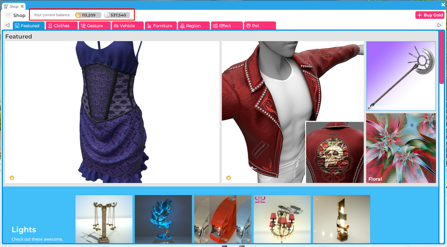 Gold is our premium currency, which is bought with USD (US dollars). You can earn Gold by selling items in the Shop for Gold or you can earn Gold every week with our premium membership. If you want an item sold only for Gold and not for Silver, set the selling price on the virtual component in Unity to -1 for Silver.