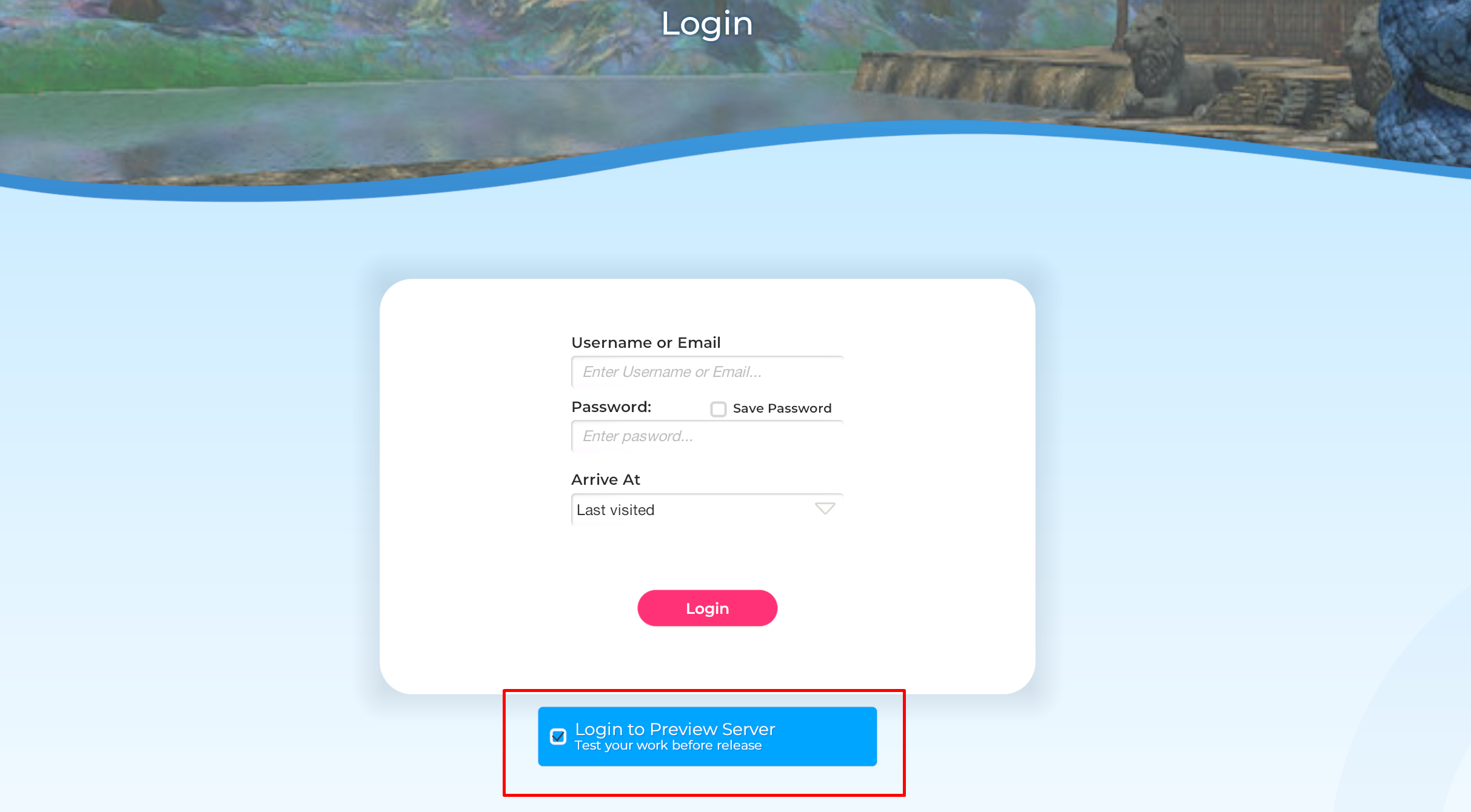 Once the upload is complete, you can preview your content on the preview server before submitting it for the review team's approval. To view your content in-world, launch your Sinespace viewer and then tick the 'Login to Preview Server' option on the login screen. You will find the item you have uploaded available in your inventory.
