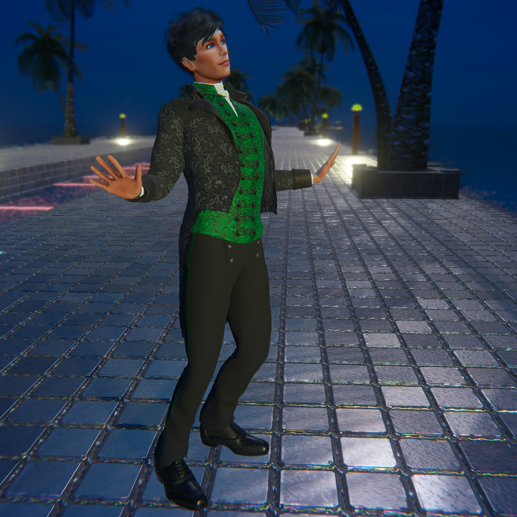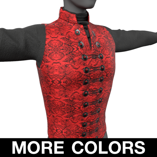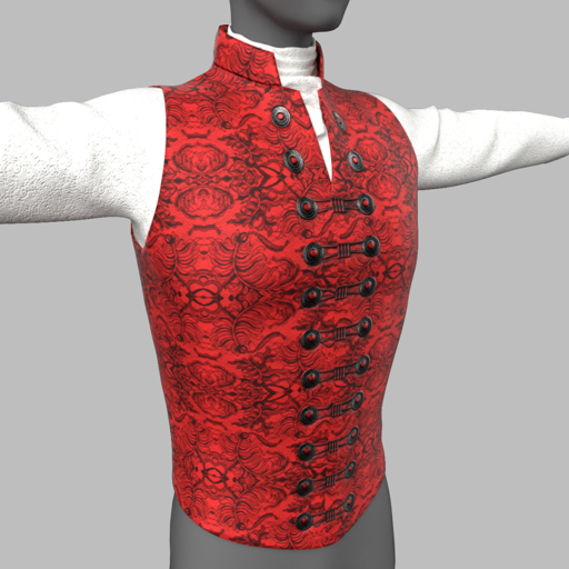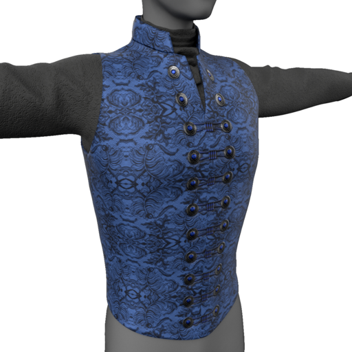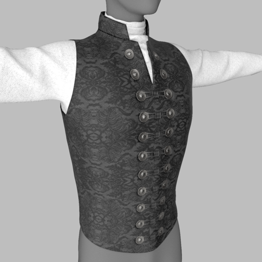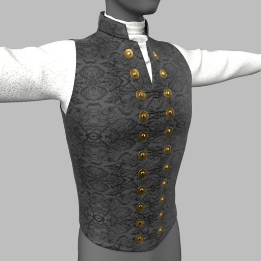 A beautiful gothic and victorian-inspired shirt, silk brocade vest, and cravat combination. Standing collar and metal/gem button details. It can be worn separately, or as part of the Levant Suit ensemble (which pairs well with the BlakOpal Oxford Shoe). Features high quality model and advanced materials.