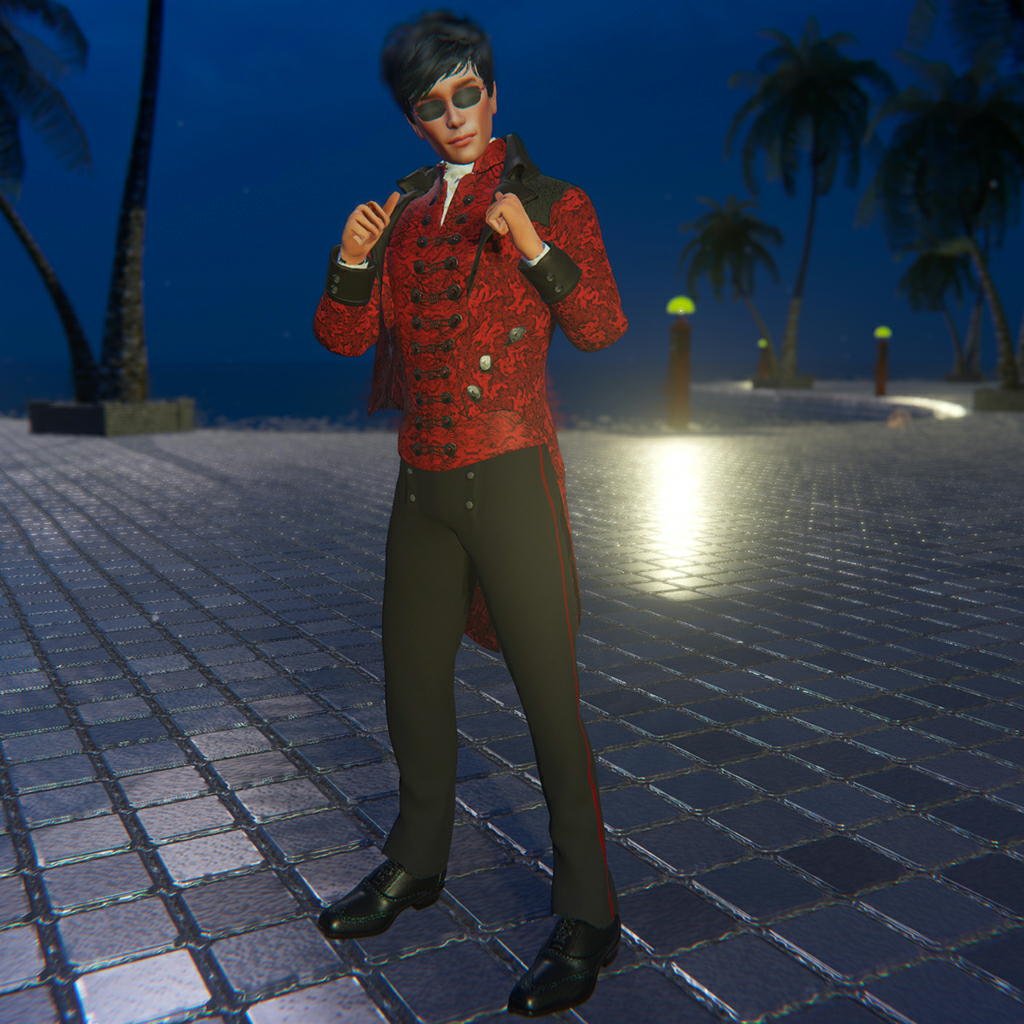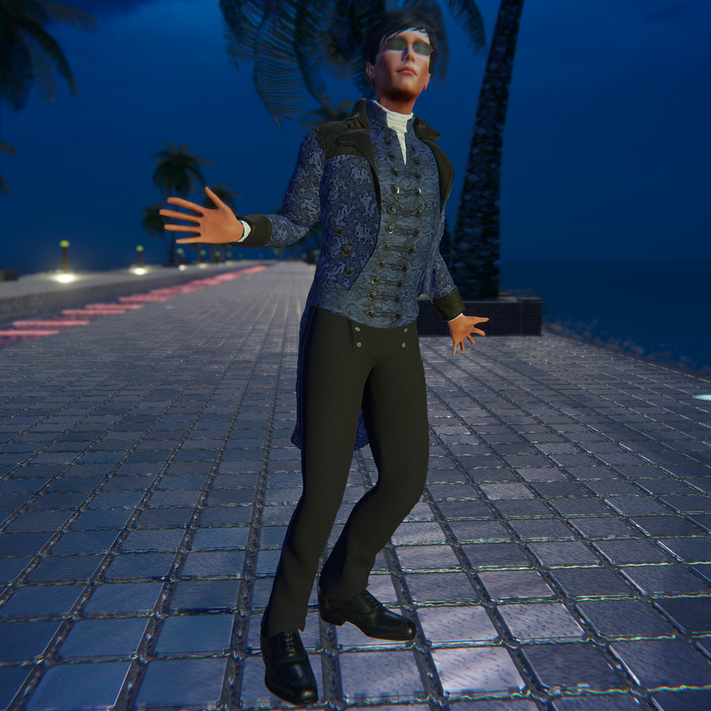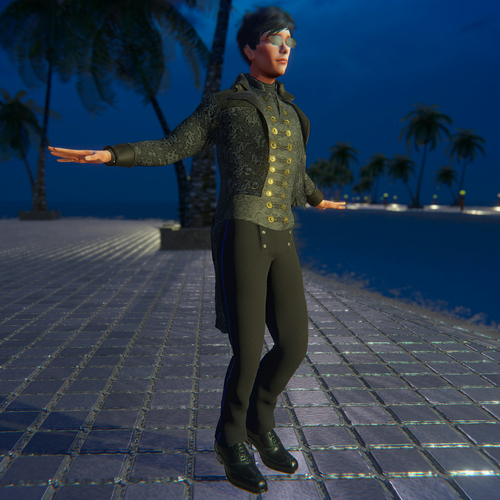 A gothic, victorian-inspired outfit that includes 5 pieces (tails coat, shirt-vest in 2 colors, pants and socks) for male avatars. Items can be worn separately, or as an ensemble (which pairs well with the BlakOpal Oxford Shoe). Features high quality model, advanced materials and cloth physics (where available).