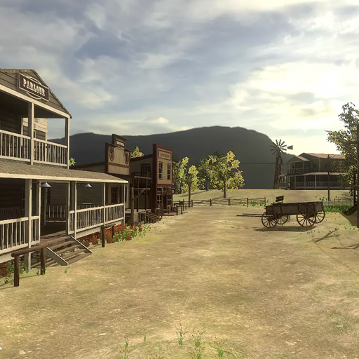 Wild West center of town. High quality detailed environment. If you like the feel of the old west this has that for you. Buildings ready to fill and use: Saloon Bank General store Apothecary Sheriff and jail Blacksmith Gunsmith Graveyard Stable