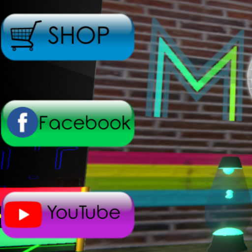 Wall Sign (one sided) that has audio reactive emissive neon with buttons you can click to open my shop, facebook or youtube channel.