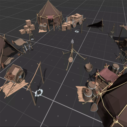 From the Polygon - Medieval Camp Collection Low Poly stylized Medieval Camp with just the right pieces for a complete camp. Large amount of area to customize the landscaping or expanding your camp.