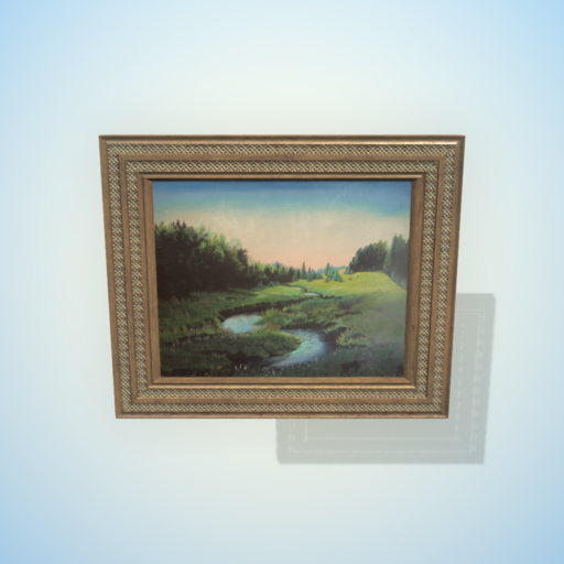 Framed_Oil_Paintings_Pach_Vol.2. It's a low poly asset of original hand painted landscape pictures framed in wooden or vintage metal frames.